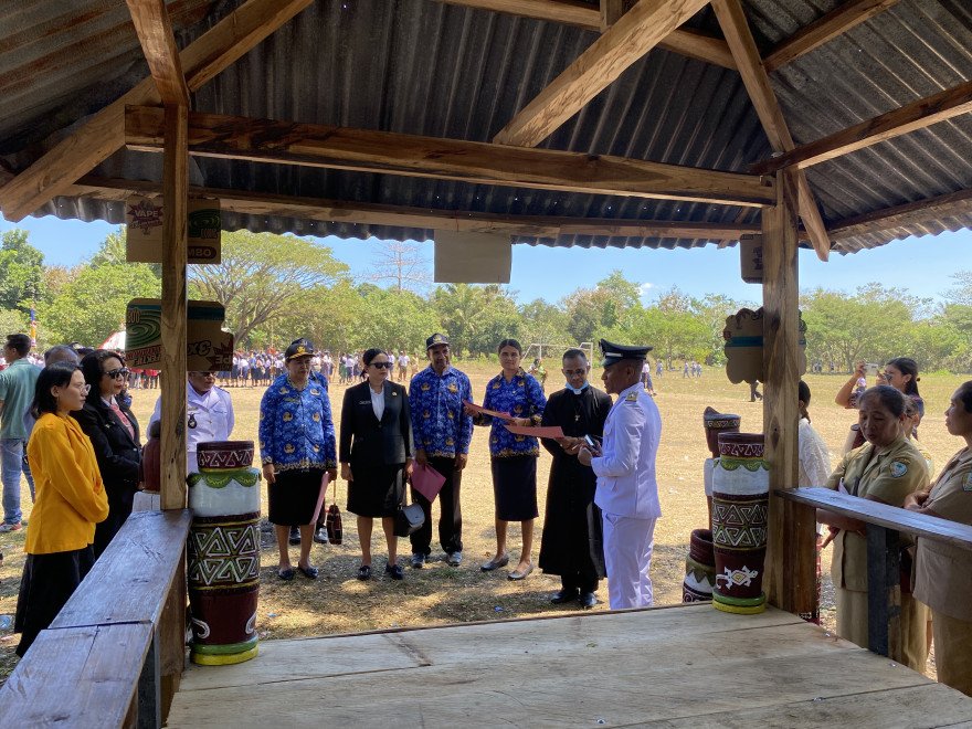 Letmafo.desa.id-Anggota DPRD dari Partai Gerindra Maria F.Tahu kunjungi Lopo Literasi Desa Letmafo saat selesai mengikuti upacara 17 Agustus di Kecamatan Insana Tengah,TTU, Minggu (17/08/25).